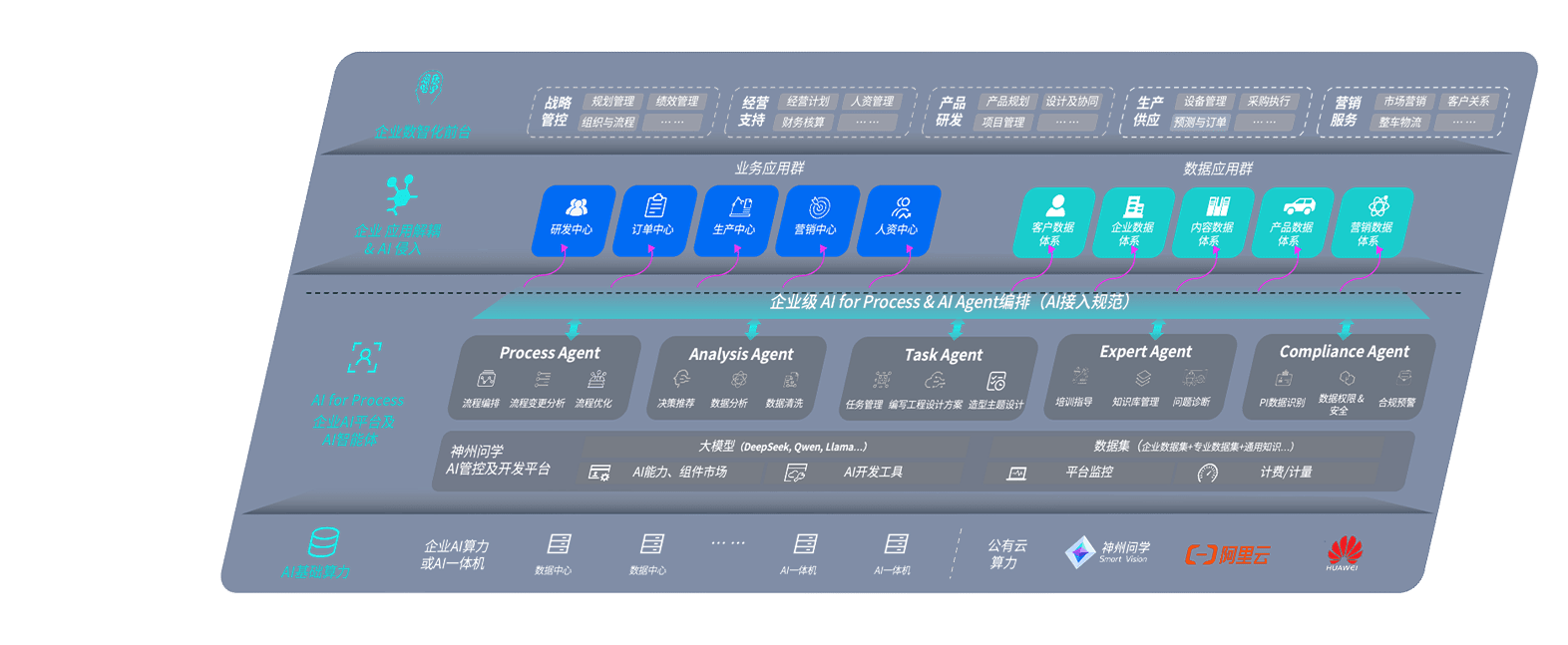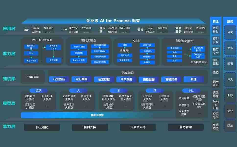 胜天国际问学智车解决方案是一套基于AI技术的汽车行业智能化系统,,,,覆盖从底层算力到顶层AI应用的全栈方案。。。方案由算力层、、、、模型层和应用层组成:算力层,,方案支持多种一体机配置,,,具备云端灵活部署、、、多云适配以及动态优化计算资源的能力;模型层,,,,胜天国际问学平台版提供了企业级AI应用一站式构建与管理平台,,,,支持基于后训练强化技术的汽车企业专属模型的训练、、、评测和运营;应用层,,,胜天国际问学DeepSeek版提供包括超级员工、、、、智能招采、、、、智能营销、、智能客服、、、、AI for BI等一系列解决方案,,可助力汽车行业实现数字化转型,,,,让管理更智能、、、响应更敏捷。。。